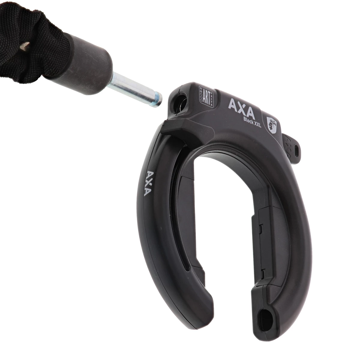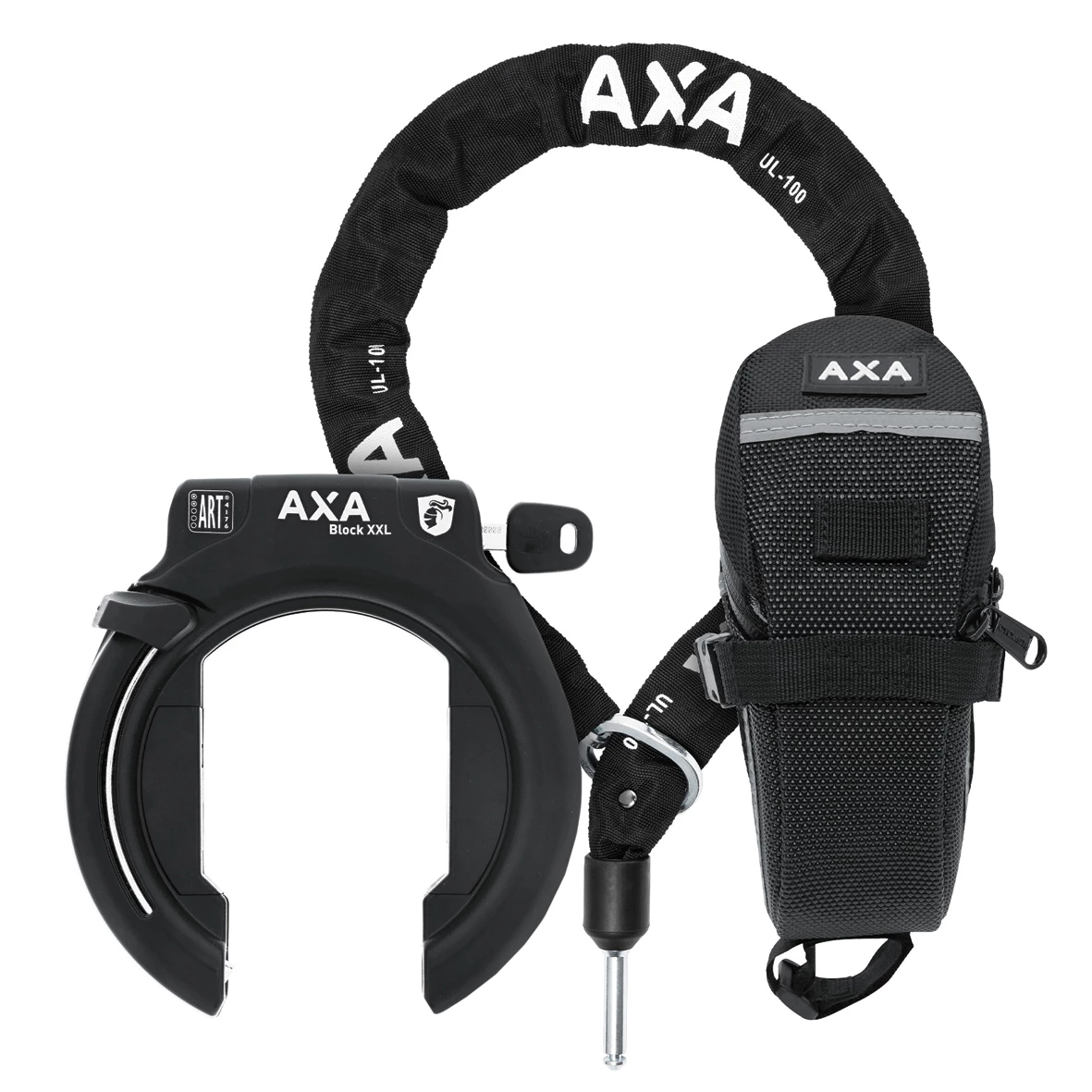 De is een ideale beveiligingsoplossing en past op de AXA Imenso en Block XXL kadersloten. De ULC 100 heeft een 10 mm dikke pen van gehard staal. De ketting bevestigt uw fiets aan een vast object zoals een lantaarnpaal of een hek. De speldenketting wordt geleverd in een zwarte polyester hoes en is 100 cm lang. Een praktische wordt meegeleverd, waarin u de ketting kunt opbergen.