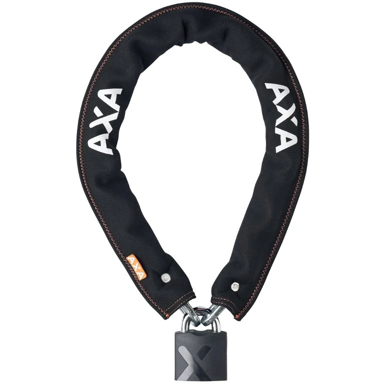 De ketting heeft een hoogwaardige neopreen hoes die het wiel beschermt tegen beschadiging. Het materiaal rafelt niet en werkt geluiddempend. Het robuuste hangslot heeft een schokbestendige kunststof behuizing in AXA-design. De handbediende cilinderafdekking beschermt de cilinder tegen vocht en vuil en verlengt zo de levensduur van het slot.