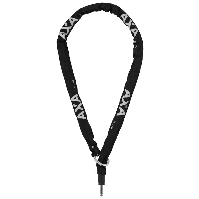 De RLC140 heeft een 10 mm dikke insteekpen van gehard staal. De RLC 140 bevestigt uw fiets aan een vast object zoals een lantaarnpaal of een hek. De ketting is gemaakt van 5,5 mm dik gehard staal en gecoat met robuust nylon om de fiets te beschermen. Lengte: 1400 mm.