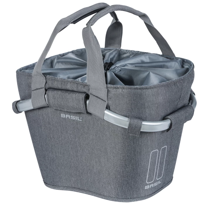 De Basil 2Day Carry All Front Basket KF is een stijlvolle fietsmand in een aantrekkelijke grijze kleur. De boodschappenmand is licht van gewicht en gemakkelijk te bevestigen en te verwijderen. De mand wordt aan het stuur bevestigd met een voorgemonteerde Basil KF-adapterplaat. Dit maakt de mand compatibel met een KF-systeem. Dit systeem moet apart worden aangeschaft. U kunt de Basil KF stuurhouder vinden op de Basil website en dit systeem combineren met de mand. Dit systeem kan ook op veel e-bikes worden bevestigd.