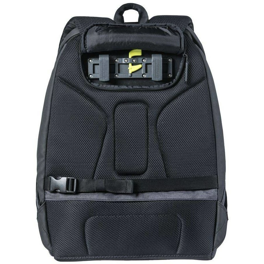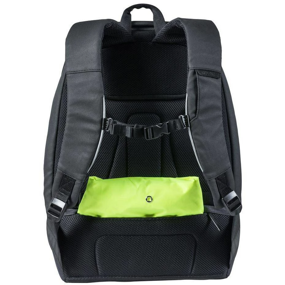 Een andere slimme functie is het LED-licht op de voorkant van de tas (Nordlicht Technology*). De Basil B-Safe rugzak heeft gewatteerde schouderbanden en een volledig gewatteerde rug. Dit maakt de rugzak zeer comfortabel om te dragen. De borstriem houdt de schouderbanden bij elkaar, zelfs tijdens het fietsen. Je hangt de tas eenvoudig aan de bagagedrager van je (elektrische) fiets met het hook-on systeem. Omdat je de tas op je bagagedrager draagt, kom je niet bezweet aan op je bestemming. En omdat het gewicht van de tas dan wat lager is, rijd je veel stabieler (en dus veiliger). Praktisch, zo’n fietsrugzak! Dit alles maakt de B-Safe rugzak perfect voor woon-werkverkeer.