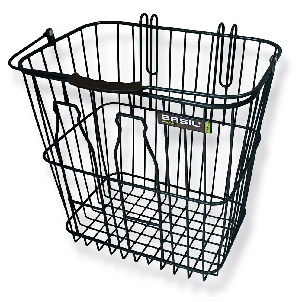 De Basil Memories Bottlebasket is een afneembare fietsmand van staaldraad, voorzien van veilige dubbele haken voor bevestiging aan de bagagedrager. De mand is super praktisch voor boodschappen, voor het halen van groenten op de wekelijkse markt, of wanneer je veel drinkflessen of dozen uit de supermarkt wilt meenemen of terugbrengen. Deze fietsmand uit de Basil collectie is voorzien van een praktische draagbeugel.