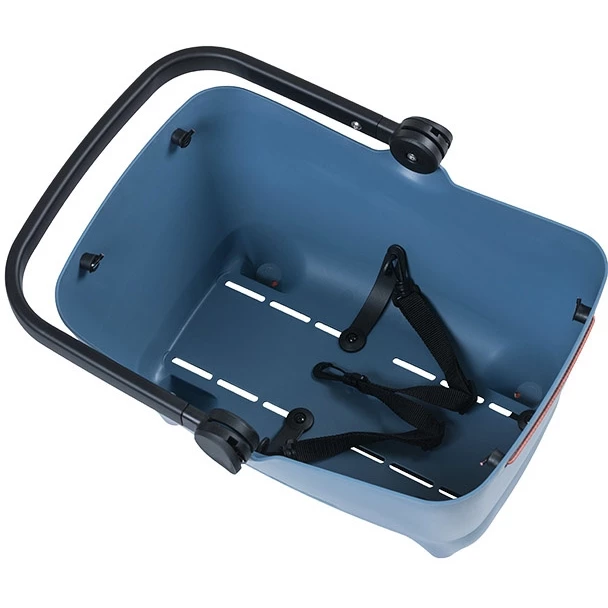 De Basil Buddy hondenfietsmand is gemaakt van kunststof en verkrijgbaar in de kleur faded denim. De afmetingen van de mand zijn 45 x 32 x 22 cm, dus perfect voor kleinere honden. Naast de mand wordt een kussen meegeleverd, een reflecterende rubberen band Basil Keep in Place, en een riem om uw viervoeter vast te zetten. Dit is ideaal wanneer u op weg bent naar de dierenarts of wanneer u door druk verkeer fietst. De mand heeft een verstelbare beugel die gemakkelijk aan de bagagedrager van een dames- of herenfiets kan worden bevestigd. Hij kan ook op een elektrische fiets worden gemonteerd. Uw product wordt ook geleverd met een MIK-systeem, waardoor de hondenfietsmand op bijna elke bagagedrager past (10 – 17 cm breedte). Wilt u ook uw trouwe viervoeter veilig op de fiets vervoeren? Kies dan voor de Basil Buddy hondenfietsmand. De mand is gemaakt van veilig, niet-giftig en duurzaam plastic.