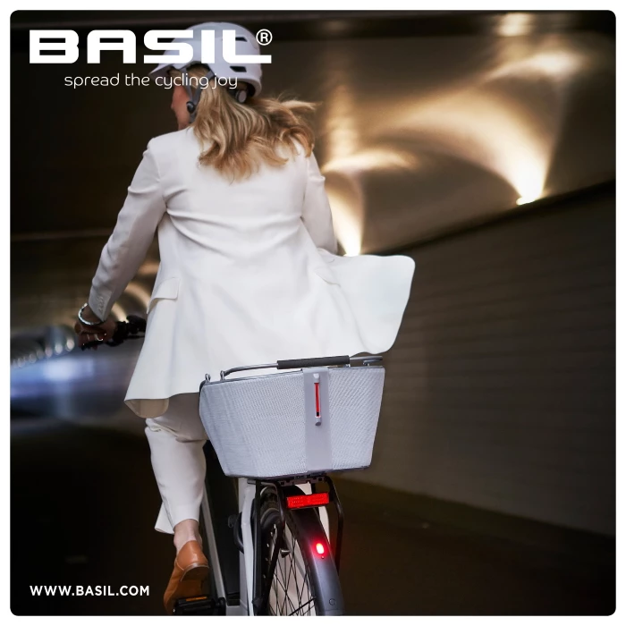 Op de bodem van de mand bevindt zich een aparte afdekmat en een band met kliksluiting om uw waardevolle spullen vast te zetten. U kunt bijvoorbeeld uw handtas of laptoptas vastzetten in het mandje wanneer u fietst. Het is zo veilig! Voor uw eigen veiligheid op de fiets heeft de mand een geïntegreerde LED-strip. Hierdoor val je meer op in het donker. De LED-lamp werkt op twee AAA-batterijen (apart verkrijgbaar).