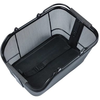 Op de bodem van de mand bevindt zich een aparte afdekmat en een band met kliksluiting om uw waardevolle spullen vast te zetten. U kunt bijvoorbeeld uw handtas of laptoptas vastzetten in het mandje wanneer u fietst. Het is zo veilig! Voor uw eigen veiligheid op de fiets heeft de mand een geïntegreerde LED-strip. Hierdoor val je meer op in het donker. De LED-lamp werkt op twee AAA-batterijen (apart verkrijgbaar).