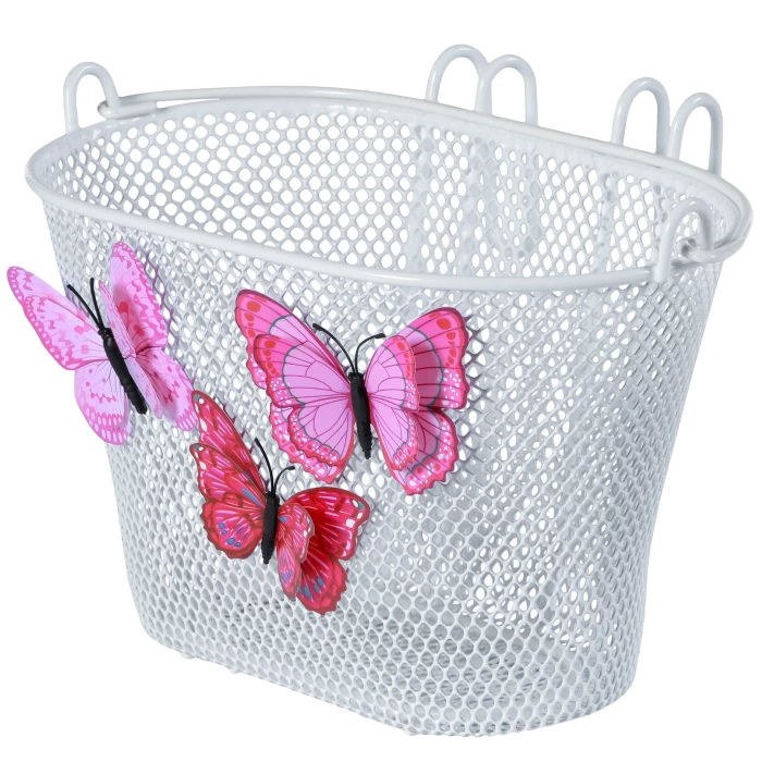 De mand Basil Jasmin Butterfly heeft een fijnmazige constructie waardoor hij zowel licht als robuust is. Op zoek naar een ideaal verjaardagscadeau voor uw kleine fietser? Deze opvallende mand is het perfecte geschenk en tevens een onmisbaar accessoire voor elke fietstocht. Ideaal wanneer u met uw kinderen naar de winkel fietst of wanneer zij extra opbergruimte nodig hebben op weg naar en van school, want er is genoeg ruimte voor al hun benodigdheden. Bovendien is deze mand zeer gemakkelijk in elkaar te zetten. De mand wordt bevestigd aan het stuur van de fiets en is voorzien van praktische stuurhaken en schitterende vlinderaccenten.