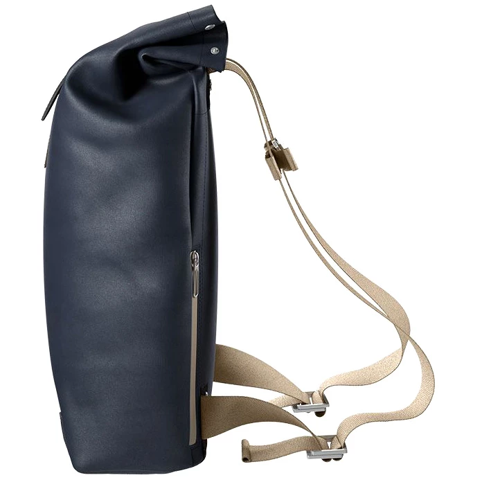 Een stijlvolle, handgemaakte rugzak met roldeksel waarvan het minimalistische ontwerp past bij elke stedelijke fietstocht. Gemaakt van waterafstotend katoen met Brooks plantaardig gelooide leren details.
