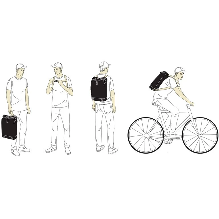 De zak en het rolsysteem bevinden zich aan de achterkant om het slanke uiterlijk te behouden en uw spullen veilig te stellen.