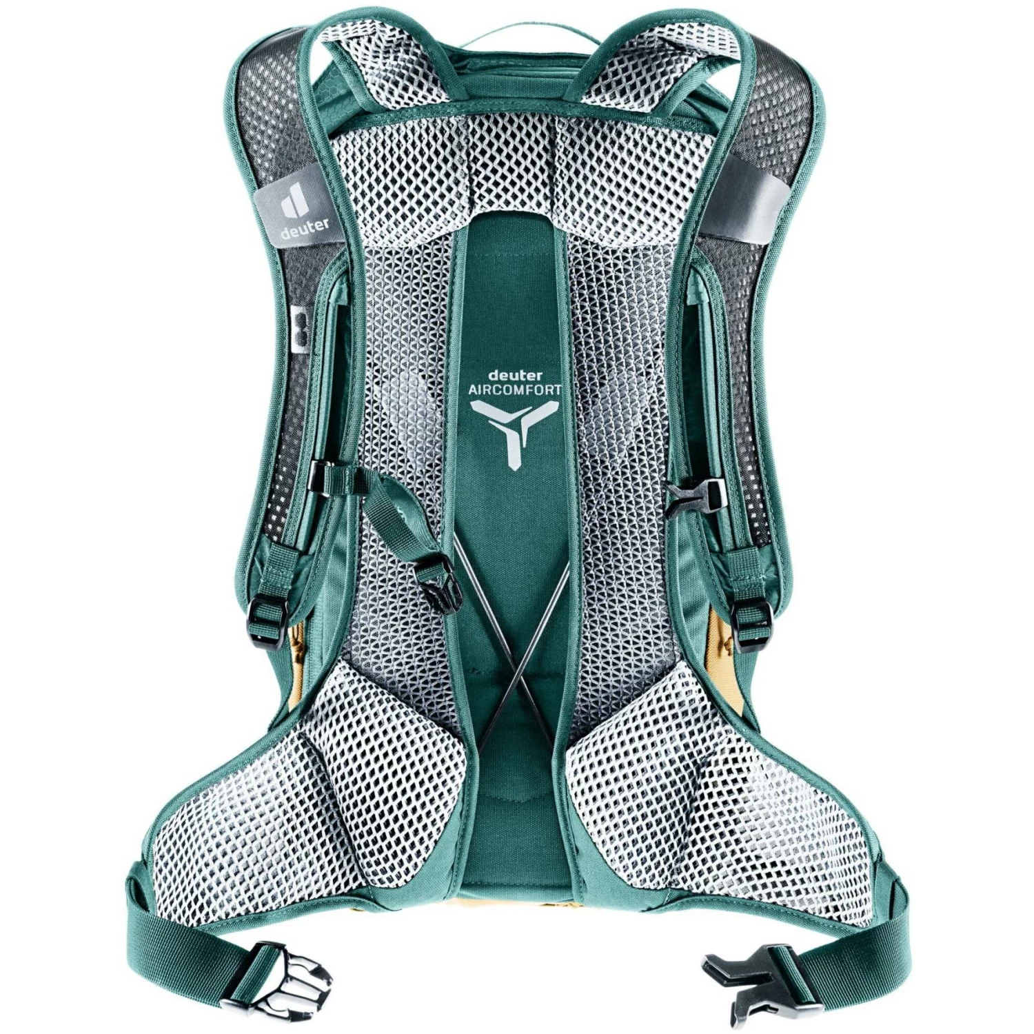 Het beproefde Aircomfort-rugsysteem is speciaal voor fietsers opnieuw ontworpen. Een centraal verdeelde rug van gaas vermindert het contactoppervlak nog verder en creëert meer ruimte voor de wervelkolom, die in de rijpositie gebogen is. Bovendien zorgen de luchtige mesh heupvinnen, geperforeerde schouderbanden en rugvulling voor maximale ventilatie, zelfs tijdens zweterige tochten.
