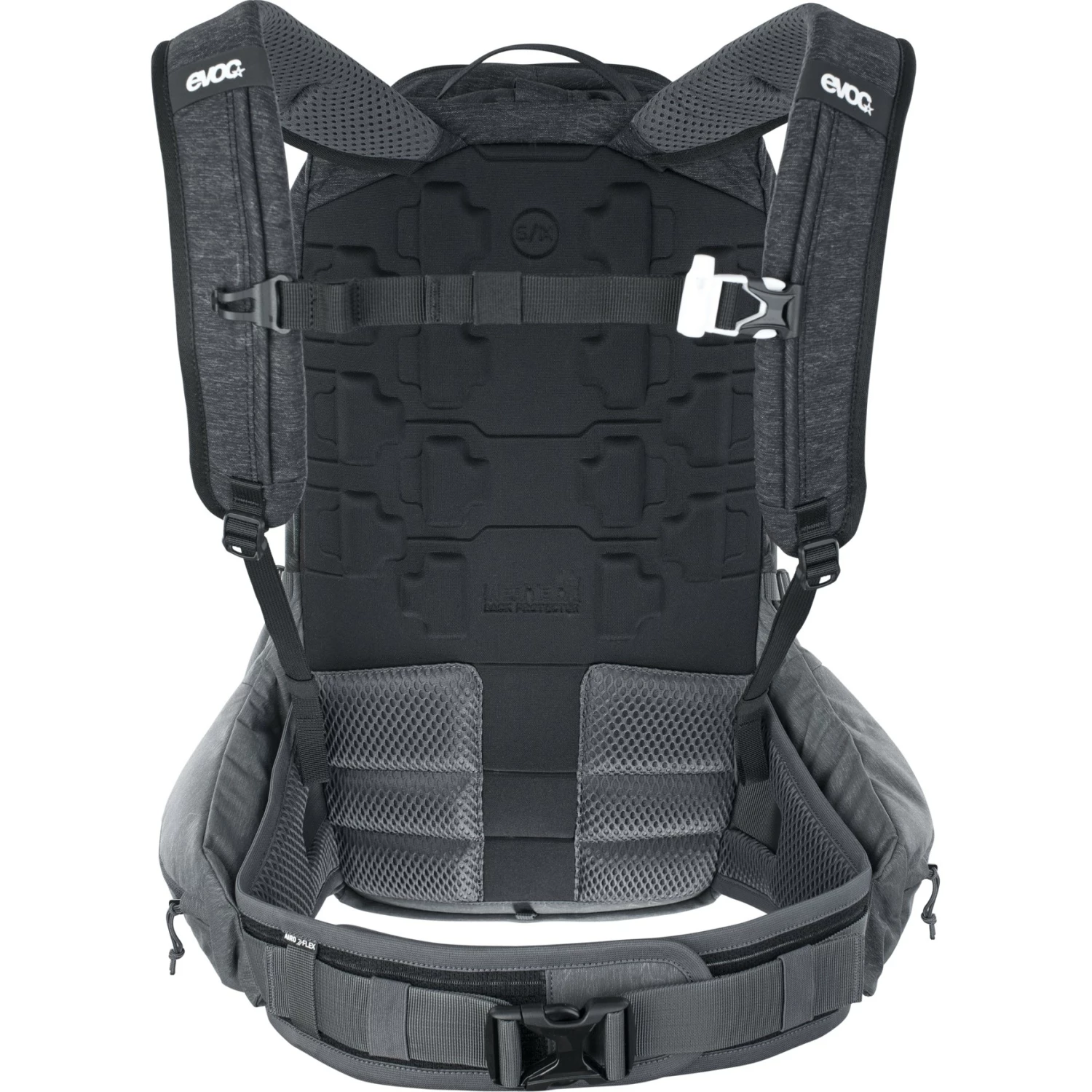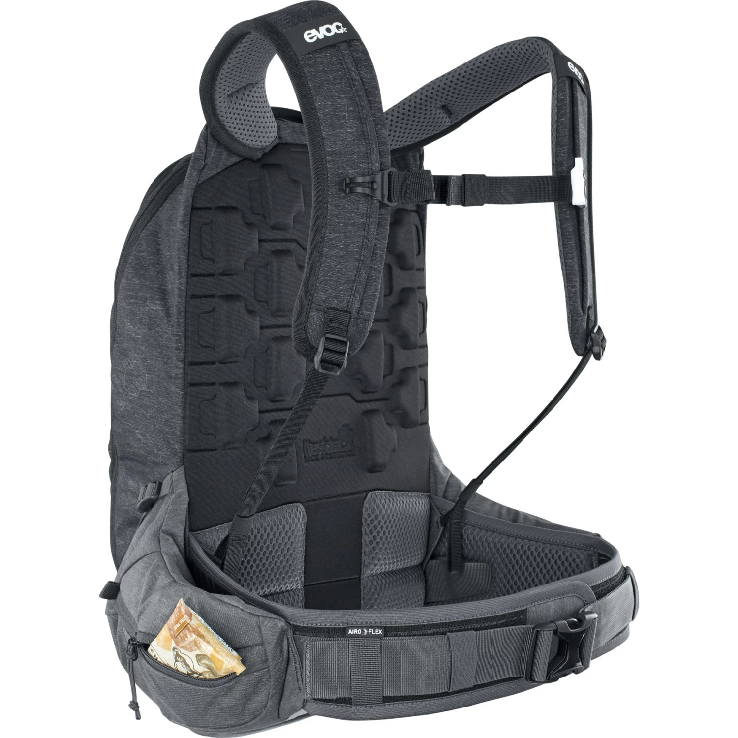 De extreem lichte en ergodynamisch flexibele LITESHIELD PLUS (EN 1621-2) rugprotector heeft uitstekende Level 2 impactbeschermende eigenschappen en absorbeert 95% van de impactenergie bij een val. Als de protector beschadigd raakt na een ernstige val, zal EVOC deze gratis vervangen als onderdeel van het GRATIS PROTECTOR CRASH REPLACEMENT.