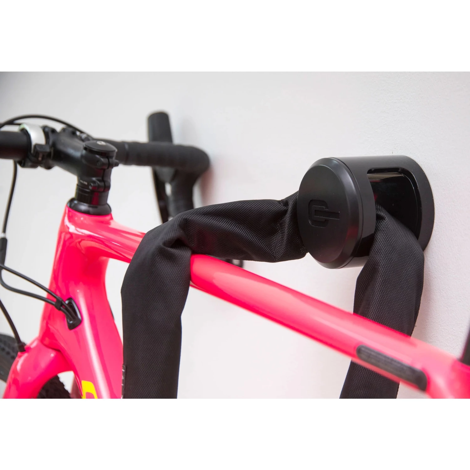 Het slot is gevat in een robuuste textielhoes om krassen op het frame te voorkomen en wordt geleverd met 3 gecodeerde sleutels.