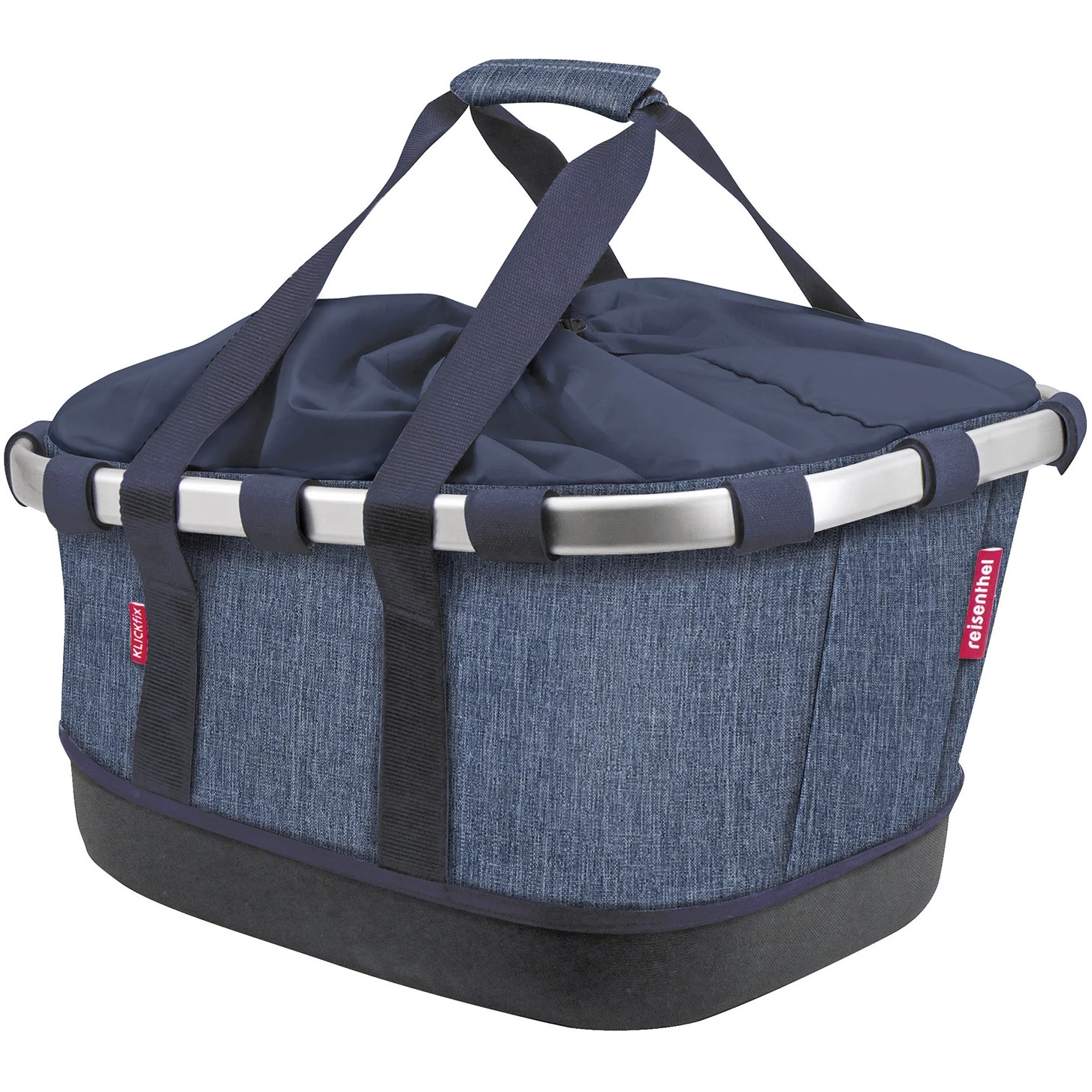 Lichte, in de lengte georiënteerde Reisenthel stoffen mand voor bagagedragers met stabiele thermogevormde bodem en flexibele draagriemen. De klassieke, naar voren hellende mandvorm creëert ruimte voor het zadel en bewegingsvrijheid voor de fietser. Een trekkoord beschermt de inhoud tegen eruit springen, een ritsvak binnenin biedt ruimte voor sleutels en waardevolle spullen. De verstijvers kunnen worden verwijderd zodat de mand plat kan worden opgeborgen om ruimte te besparen.