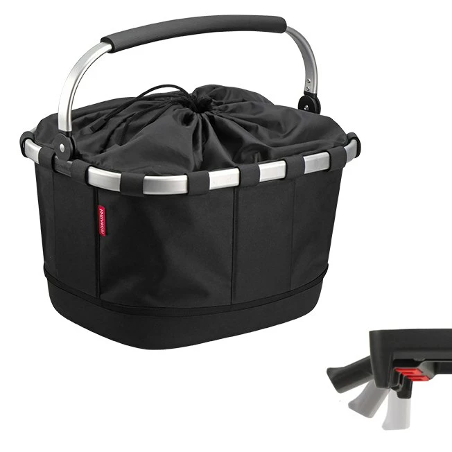 Met KLICKfix komt de populaire boodschappenmand van Reisenthel eindelijk naar de fiets. Dankzij de gevoerde draaggreep kan de kruislingse mand comfortabel worden gedragen en met een trekkoord worden gesloten. De stevige thermogevormde bodem en verstevigingen zorgen voor stabiliteit, terwijl een ritsvak binnenin ruimte biedt voor sleutels en waardevolle spullen. De verstijvers kunnen worden verwijderd zodat de mand plat kan worden opgeborgen om ruimte te besparen.