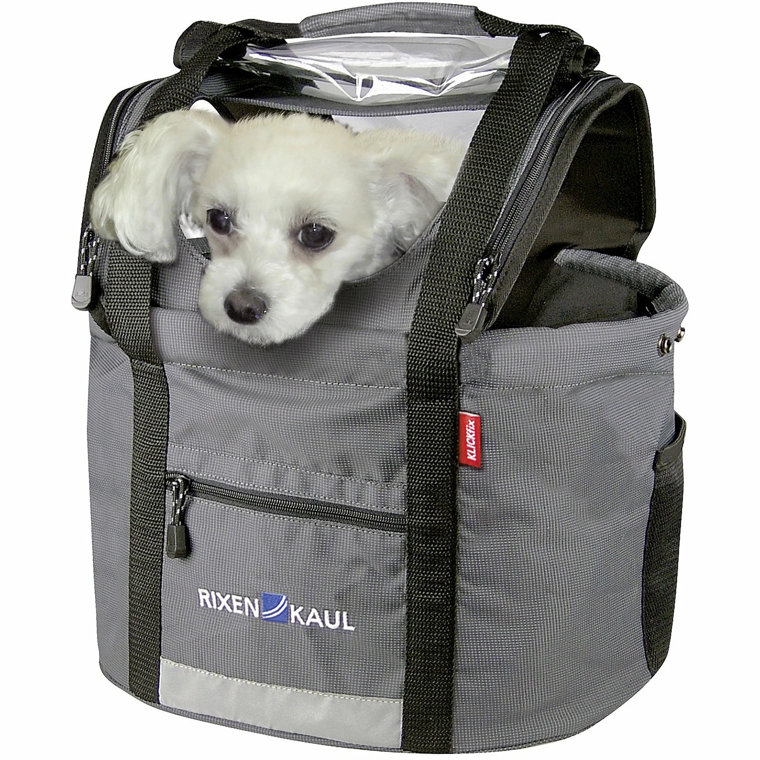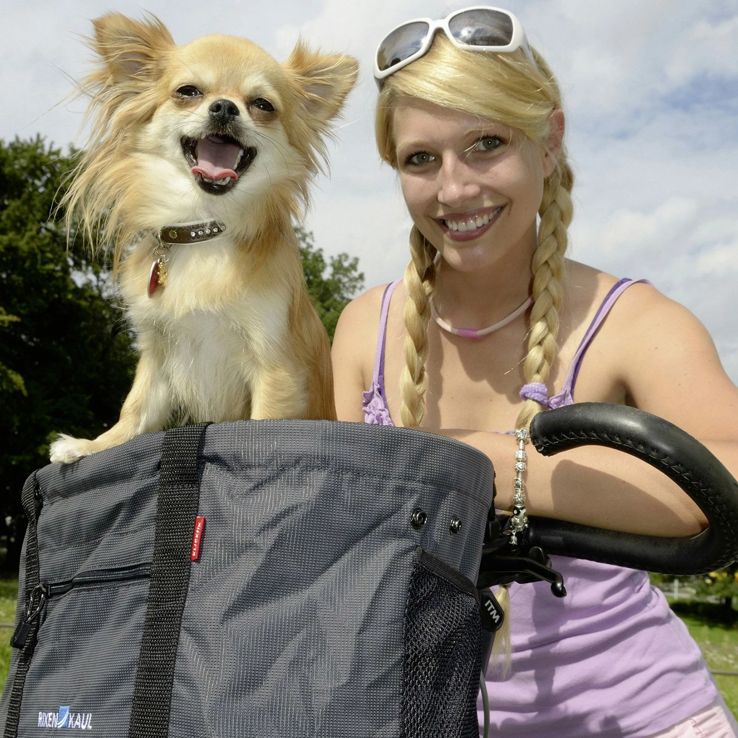 Kleine viervoeters tot maximaal 5 kg (afhankelijk van de gekozen adapter) kunnen comfortabel en veilig meerijden in deze stuurtas. Een oprolbare wind- en regenkap biedt vele mogelijkheden om licht- en luchtopeningen te creëren. Aan de zijkant kan de tas indien nodig ook volledig worden afgesloten (het deksel verdwijnt in het extra vak). Binnenkant voorzien van kussen, grondoog en verstelbare riem. Grote voorzak voor waardevolle spullen en zijzakken van gaas. Met draagbeugel en grote reflector. De bovenklep is volledig afneembaar, waardoor de transporttas gemakkelijk te openen en te reinigen is. Zonder de hoes kan de doggy bag ook worden gebruikt als boodschappentas wanneer de hond thuis blijft.