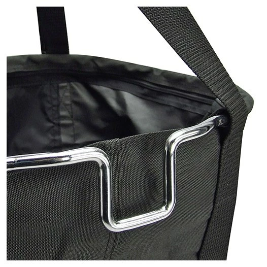 Het slimme alternatief voor de conventionele stuurmand, nu met extra deksel. Indien nodig kan de shopper snel worden gesloten met een trekkoord. Dus niets springt eruit en de inhoud is beschermd tegen nieuwsgierige ogen. Hij biedt veel ruimte en kan na gebruik plat worden opgevouwen. Gemaakt van robuuste stof, met versterkte basis, verchroomd stalen handvat en brede draagriemen.