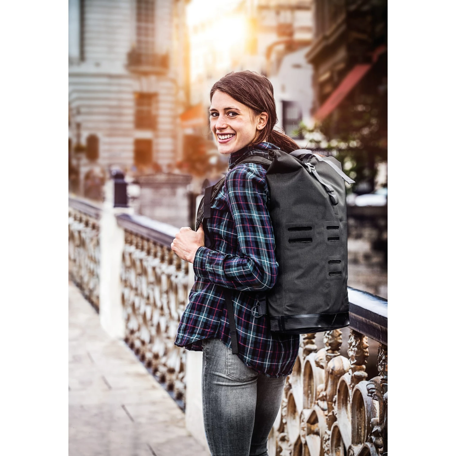 De ORTLIEB Commuter Daypack City is een waterdichte stadsrugzak van lichtgewicht, duurzaam nylon materiaal. Met zijn rolsluiting, groot hoofdvak en gewatteerd notebookvak (tot 15,4) is het een veilige plek voor uw documenten en technische apparaten in elk weer – en dankzij het enorme draagcomfort een aangename metgezel voor u.