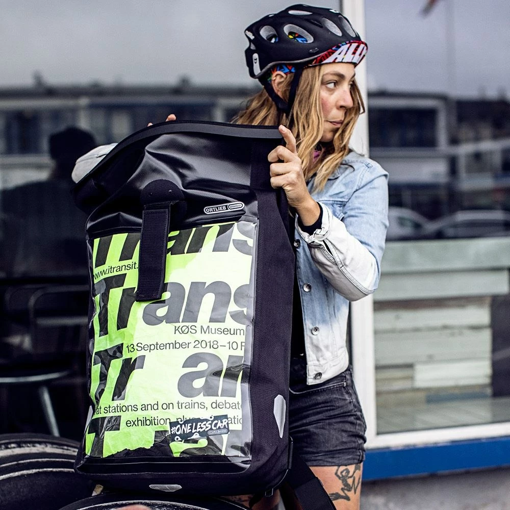 Professionele high-end boodschappentas met transparant insteekvak voor reclameposters in A3-formaat voor secundair gebruik als mobiele reclamedrager. Gewoon slim: met de Messenger-Bag Pro wordt de koerier die kriskras door de stad rijdt een mobiele advertentieruimte voor klanten en extra reclame-inkomsten of in zijn eigen zaak. De transparante, waterdichte zak op de achterkant is groot genoeg voor posters op A3-formaat die zullen opvallen op straat. Ook het interieur is gepland met jarenlange kennis van ORTLIEB: Het uitneembare binnenvak met rits voor reischeques, smartphone, stadsplattegrond, pennen enz. kan ook als heuptasje worden gedragen. Het opbergvak houdt vrachtdocumenten en chauffeurscheques netjes opgeborgen. De rolsluiting met extra lang klittenband maakt snelle toegang en vervoer van omvangrijke voorwerpen mogelijk. De met schuim gevoerde rug met goede ventilatie en de heupgordel zorgen voor uitstekend draagcomfort en de voorgevormde riemen met reflecterende strepen voor meer zichtbaarheid en veiligheid in het verkeer.