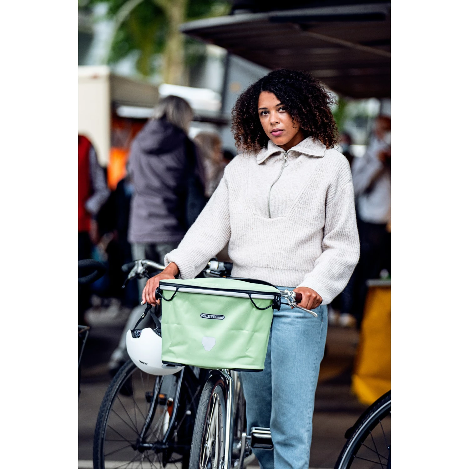De Up-Town City is een mandvormige tas voor aan het stuur. En tegelijkertijd een waterdichte fietsmand van duurzaam materiaal dat duizenden keren is beproefd voor fietstassen. Perfect voor een snelle trip naar de bakker, het postkantoor of de wekelijkse markt. Om bij je sleutels of portemonnee te komen, hoef je het deksel niet eens helemaal te openen, maar kun je het gemakkelijk aan de voorkant opklappen. Er is een apart ritsvak binnenin voor uw waardevolle spullen.