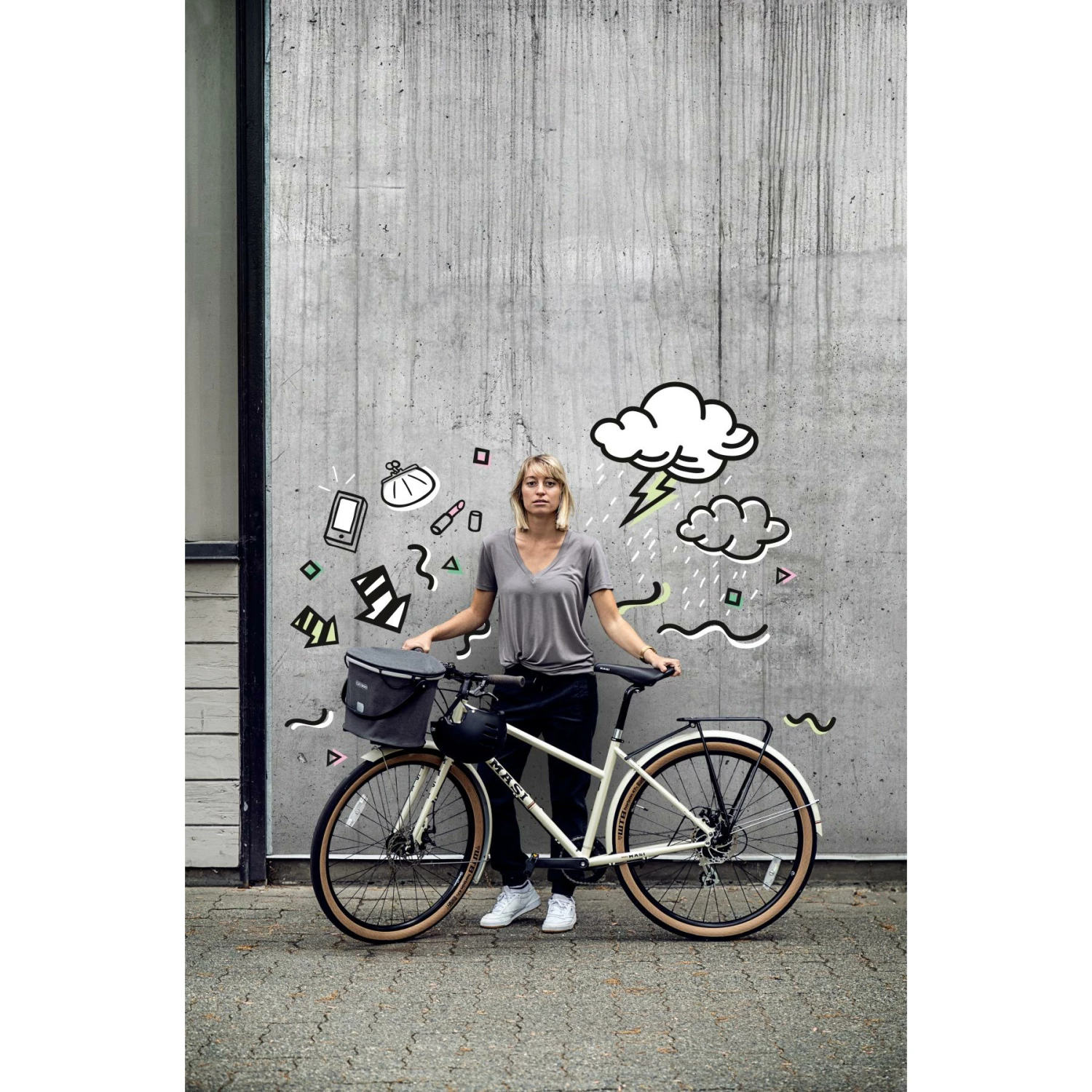By attaching it to the handlebar, you will always have the basket in view while riding. Thanks to the inner stiffener, the basket stands on its own and is easy to fill with shopping. The lid can be opened completely at any time and stored in the basket. If it starts to rain, the basket can be closed again in seconds.