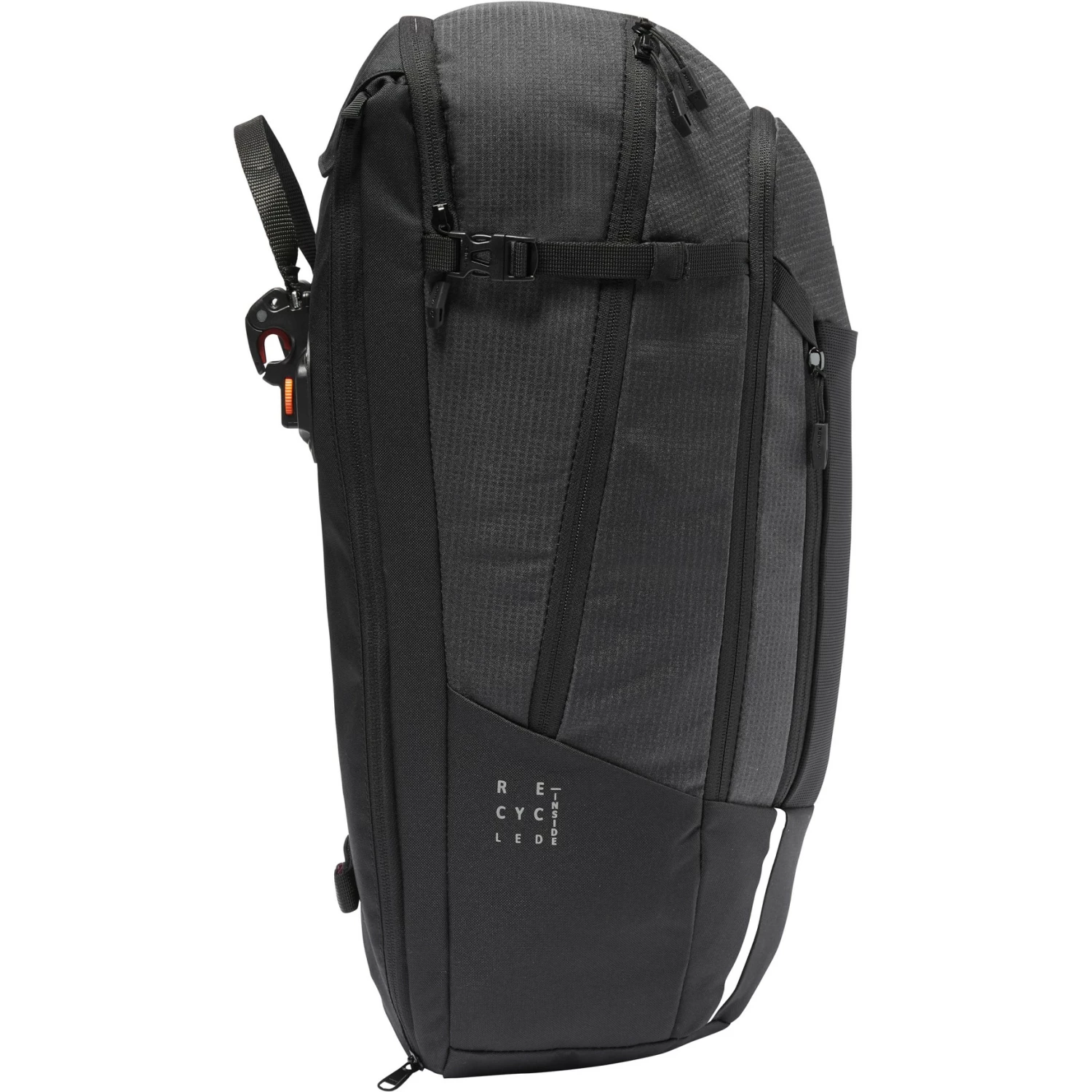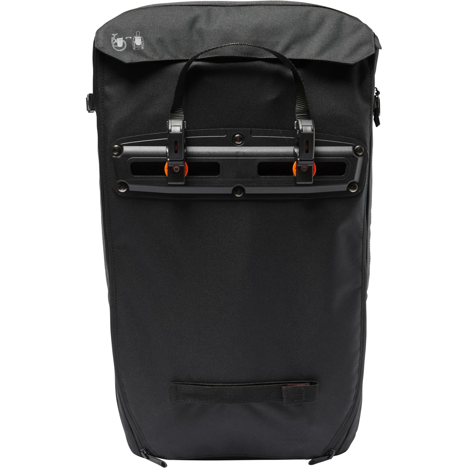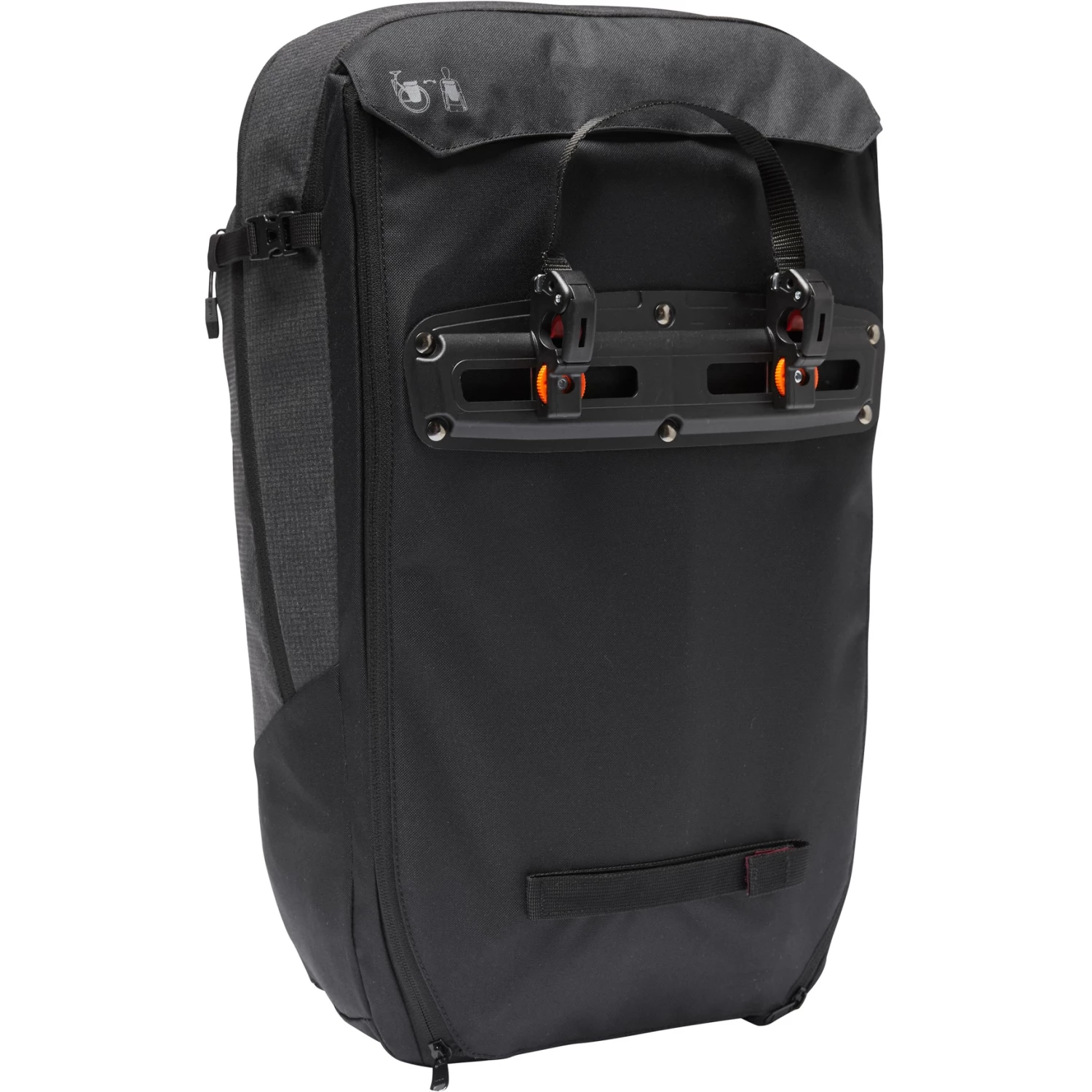 Rugzak of fietstas? Allebei! Het is de ideale metgezel voor forenzen die willen dat de tas veilig op de fiets zit tijdens het fietsen, maar hem daarna als rugzak willen dragen in de trein en de bus of naar de universiteit. De tas wordt via de QMR-haken (bijv. Abus 145/20, niet inbegrepen) aan het bagagerek bevestigd, dat met een slot kan worden afgesloten, en wordt in een handomdraai omgebouwd tot rugzak. Open daartoe de twee verticale ritsen en berg het hele bevestigingssysteem op in een met klittenband afgesloten compartiment.
