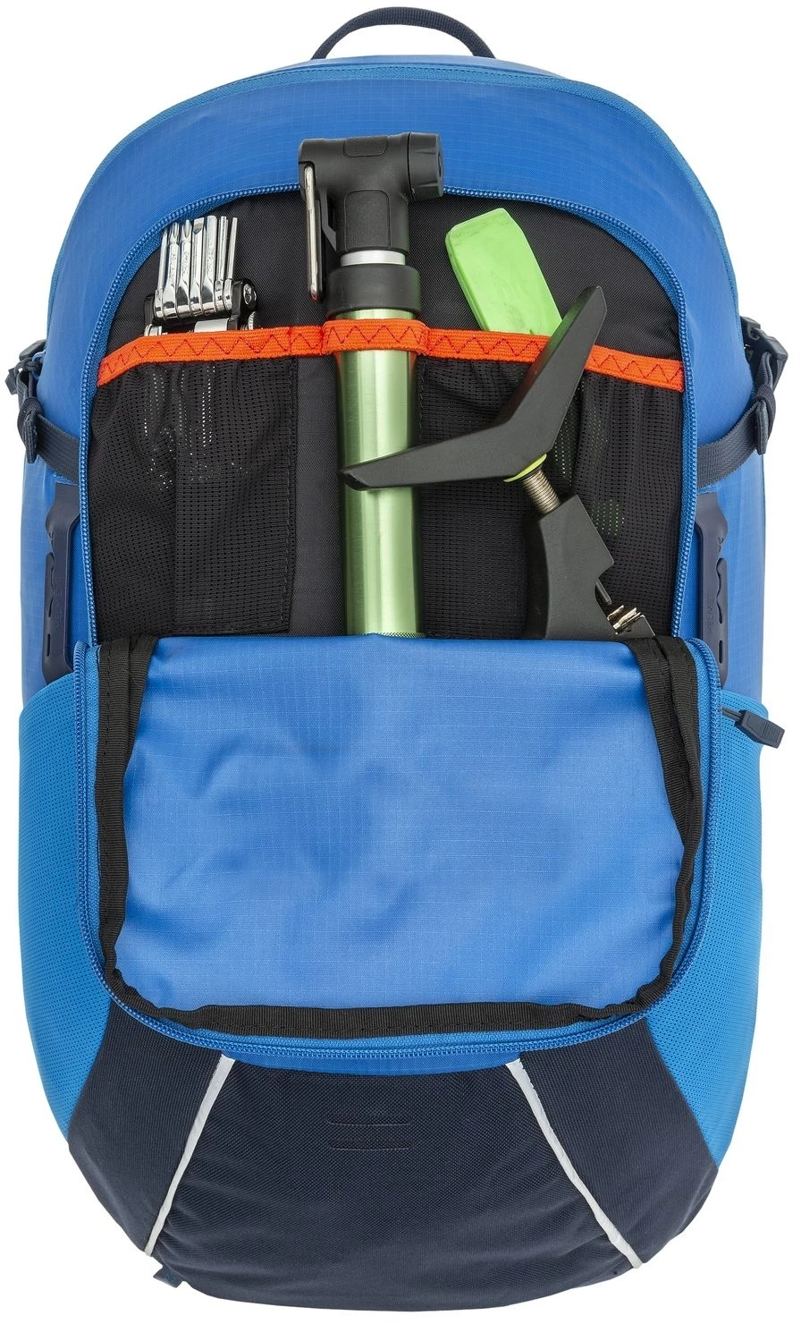 Zin in een spontaan uitje met de fiets? Dan is de Tremalzo 16 de perfecte metgezel! Hij maakt niet alleen indruk met zijn uitstekend geventileerde Aeroflex 3D-rugsysteem, maar ook met een langdurig hoog draagcomfort en een doordachte vakindeling. Dankzij de slimme compartimentering is er ruimte voor alles wat je onderweg mee moet nemen – van de luchtpomp tot de helm en van de drinkblaas tot het gereedschap. De compressieriem aan de bovenkant zorgt ervoor dat de inhoud van de rugzak zonder schokken wordt opgeborgen; zijvakken van gaas bieden ruimte voor alles wat snel bij de hand moet zijn.