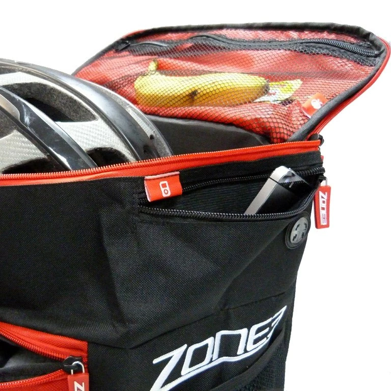 - Er zijn drie kleinere zakken met rits, een aan de voorkant, een aan de bovenkant en een gaaszak binnenin van 20cm x 20cm. Ideaal voor route-informatie, sleutels, eten, zonnebrillen enz.